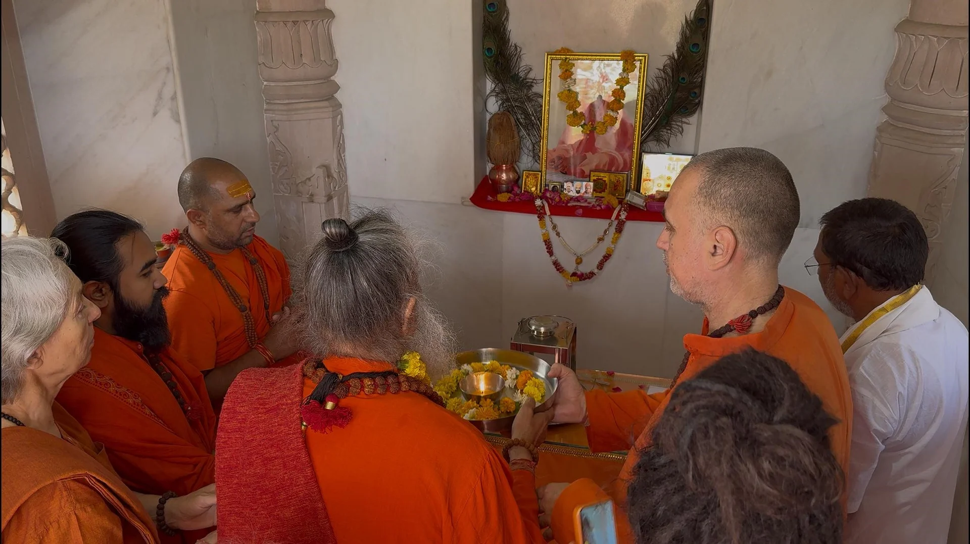 स्वामीअवतारपुरीजीनेप्रेम, सम्मानऔरभक्तिकेप्रतीककेरूपमेंहमारेगुरुदेवकोएकपुष्पमालाअर्पितकी।